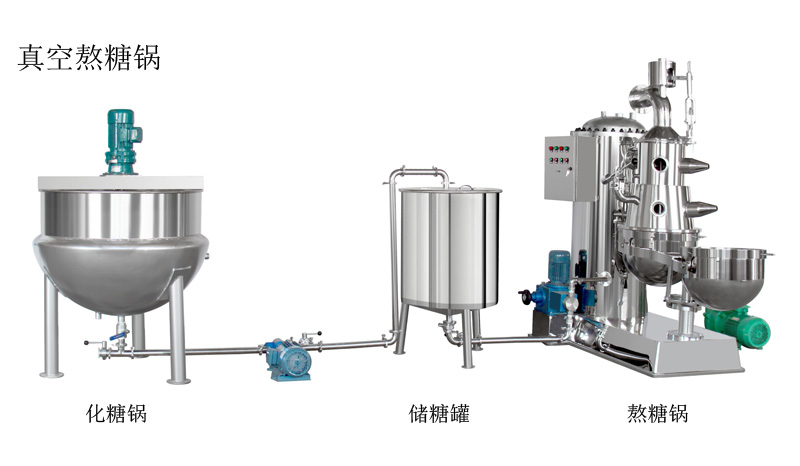 該套熬糖設備用于糖膏的連續(xù)性真空熬糖,自動抽真空,自動控溫,糖果透明度高,操作簡便。
